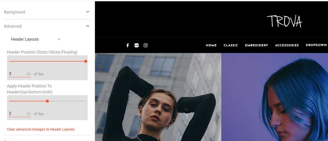This option lets specify the part of the header you want to apply the position chosen above. There are three options:
